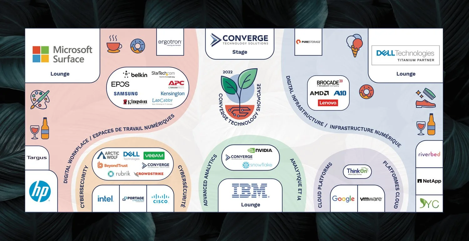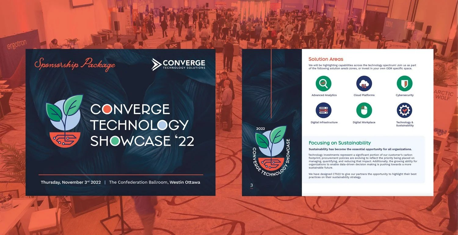 Converge Technology Solutions Corp. (CTS) is a global IT and cloud solutions provider based in Toronto, ON. Every year, CTS holds a technology showcase in Ottawa, Ontario at the Westin Hotel. As one of the lead graphic designers at Converge, I was tasked to design the event from head to toe.